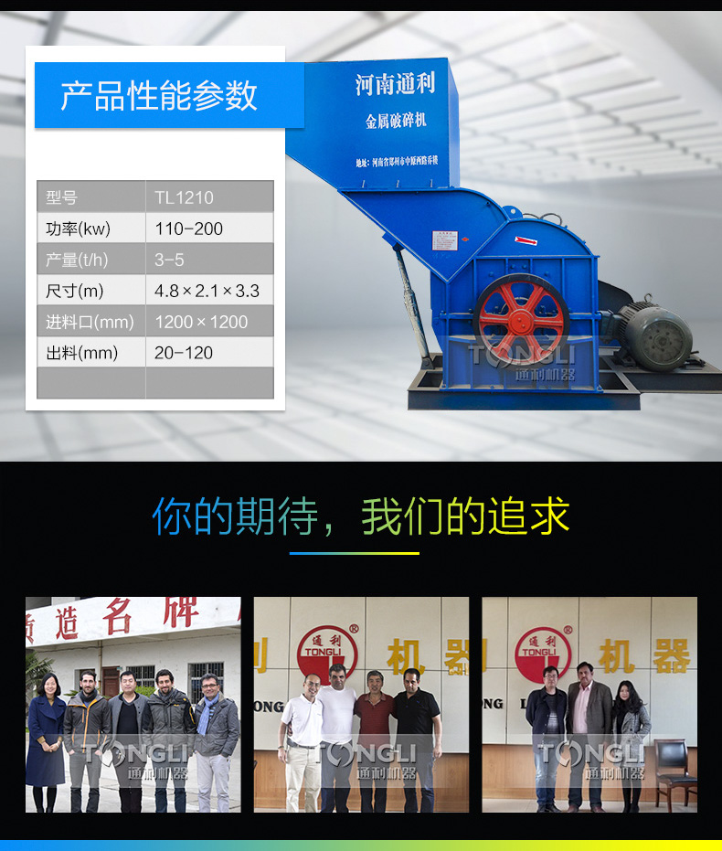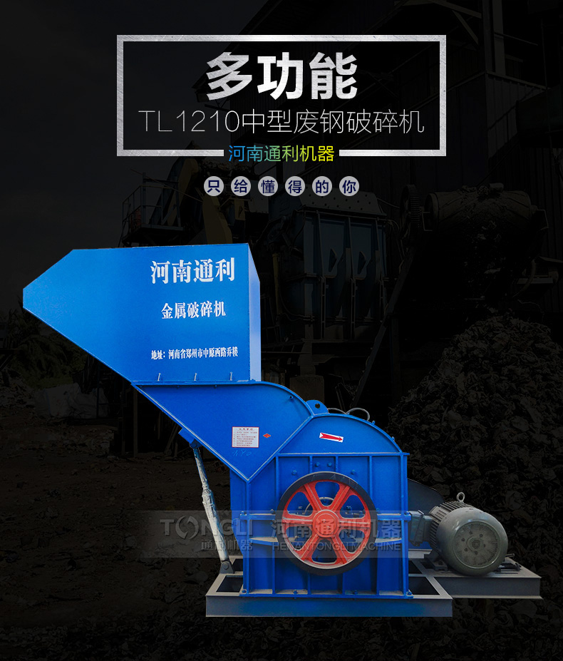 废钢破碎机是结合市场需求而成的产品。主要针对量废弃金属的再生利用,进行预破碎处理,并清理表面的油漆和污垢。该机产能每小时4T。
