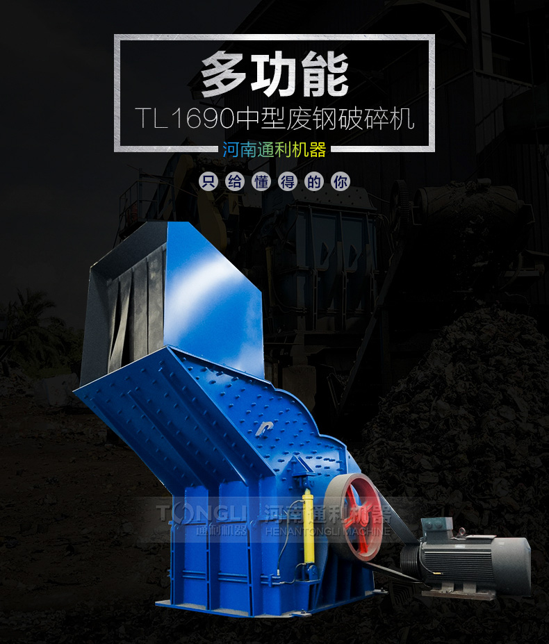 废钢破碎机是结合市场需求而成的产品。主要针对量废弃金属的再生利用,进行预破碎处理,并清理表面的油漆和污垢,该机产能每小时6-8T左右。