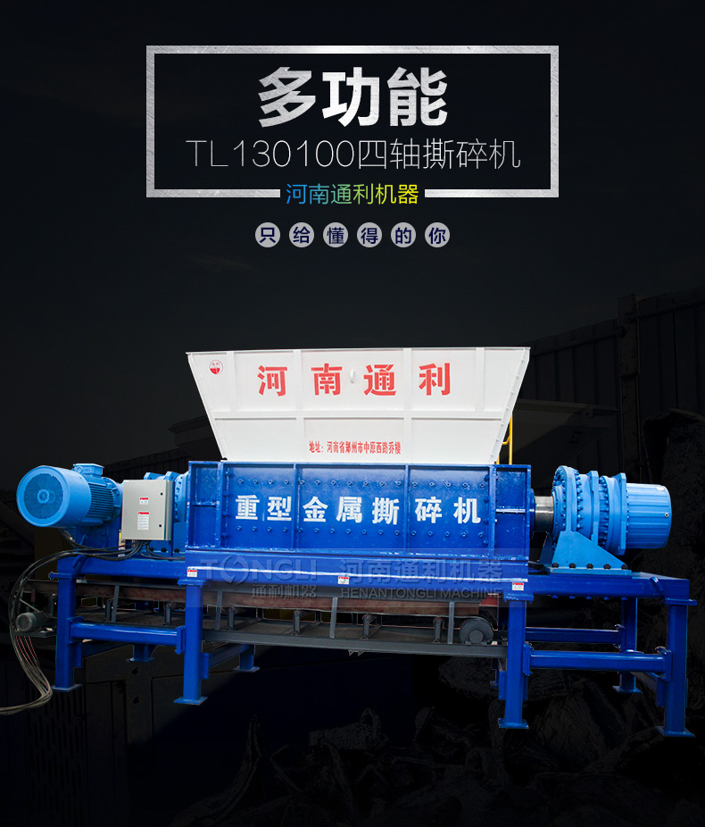 四轴撕碎机是结合市场需求而成的产品。采用微电脑(PC)自动控制,设启动、停止、反转及载自动反转控制功能,主要用于撕碎有一定强度的轻薄金属、废生活垃圾等,增加其堆积密度以便于运输,再利用。